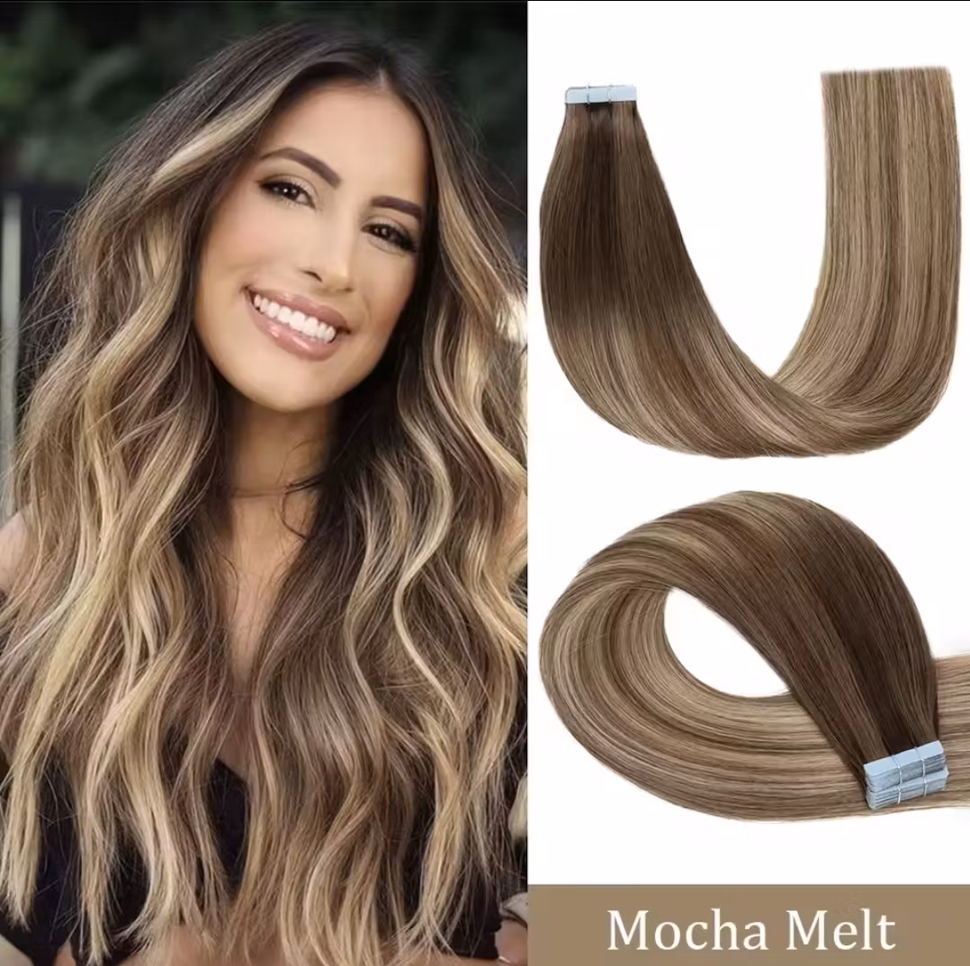 Tejphår kallas även tape hair extensions, tejp löshår, tape extensions, tejpträns eller tape in extensions.