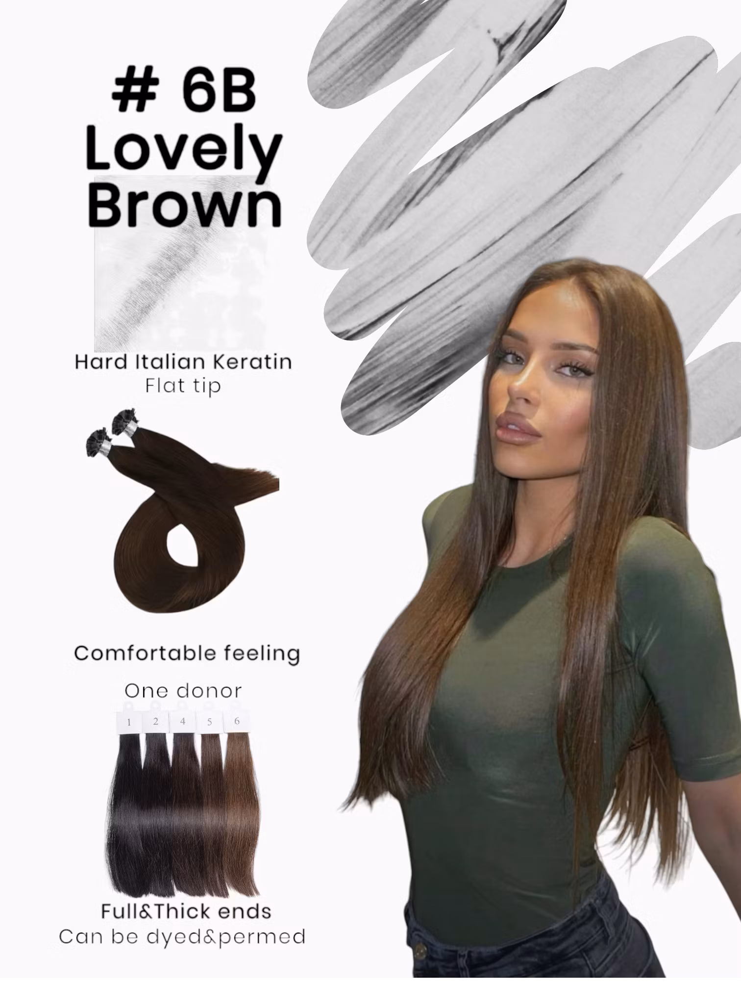 Keratin /Nail hair extensions Flat-Tip # 6B (Lovely Brown)