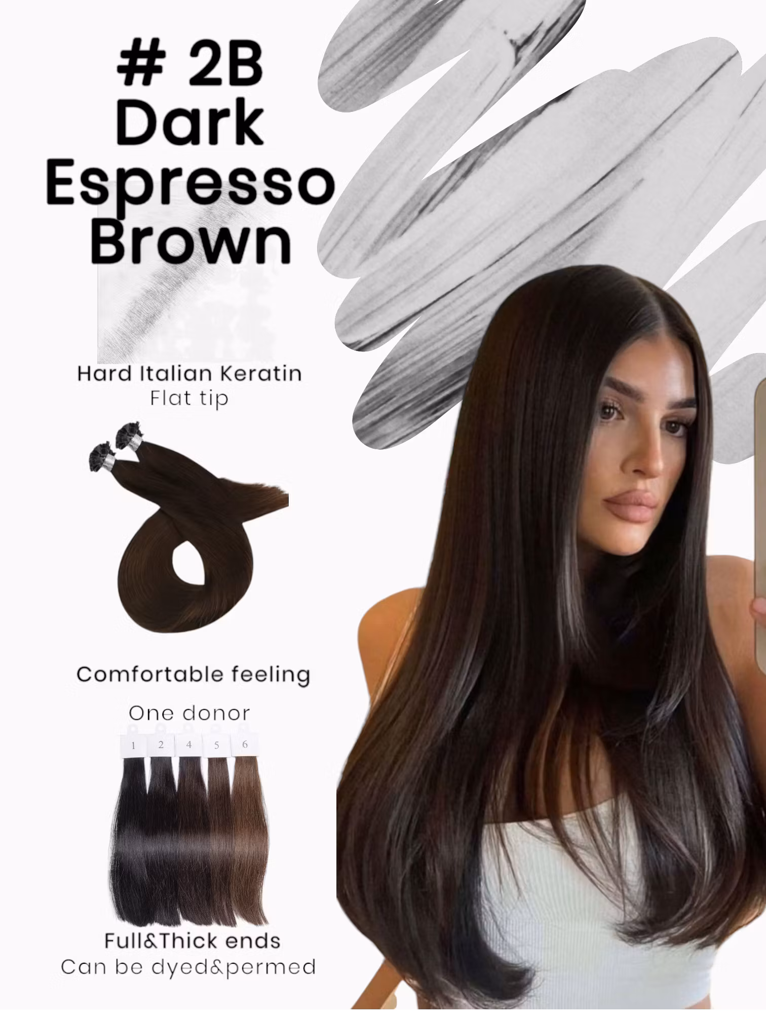 Keratin /Nail hair extensions Flat-Tip # 2B ( Dark Espresso Brown)
