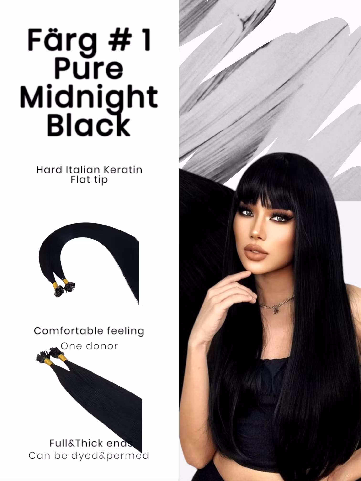 Keratin /Nail hair extensions Flat-Tip #1N (Pure Midnight Black)