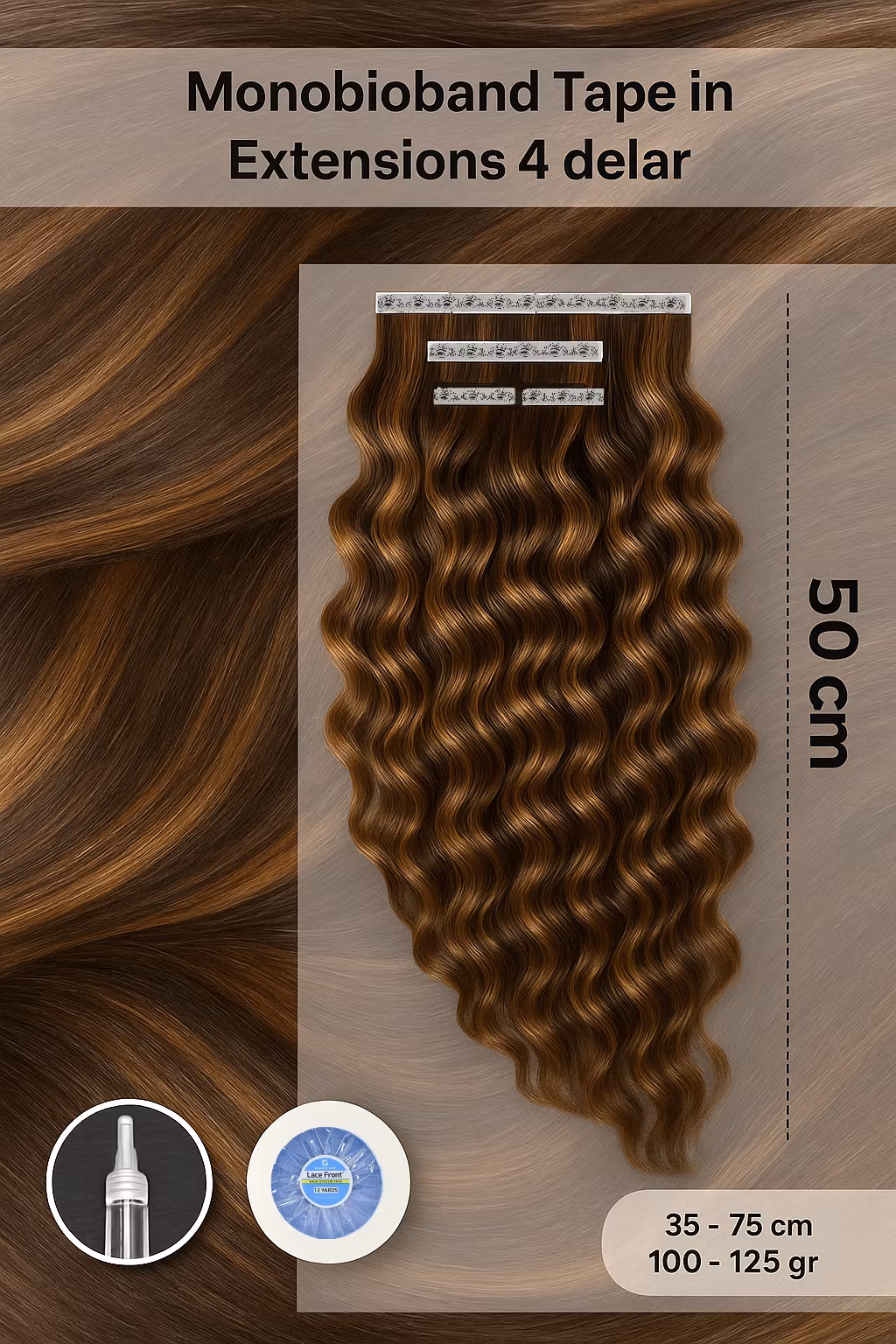 Monobioband är en speciell typ av tejphårförlängningar som är avsedda för både professionell och hemmabruk. Till skillnad från vanliga tejper tillverkas de med biomaterial, mjuk bioprotein eller silikonbas, vilket gör dem mycket skonsamma mot hårbotten och ditt naturliga hår.